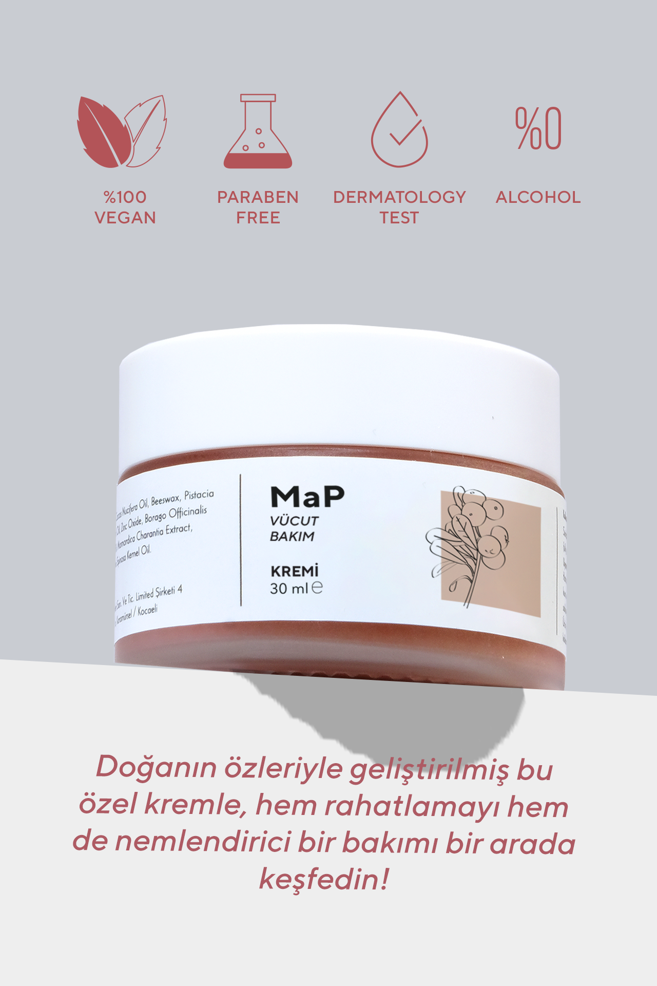 Doğal özlerle geliştirilmiş bu özel krem, cilt bakımını ve rahatlamayı bir arada sunar. Günün sonunda, vücudunuzun ihtiyaç duyduğu bakımı ve ferahlatıcı etkisiyle hem rahatlama hem de nemlendirici bakım keşfedin. Kendi sağlığınız ve cildiniz için doğanın sunduğu bu eşsiz formülü deneyin!